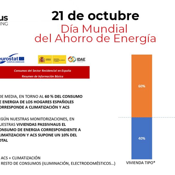 Este gráfico nos muestra como en los hogares españoles la media de consumo de climatización y agua caliente sanitaria es del 60% y el 40% restante corresponde a gastos de iluminación, electrodomésticos…, sin embargo, en una vivienda 𝐂𝐄𝐑𝐓𝐈𝐅𝐈𝐂𝐀𝐃𝐀 𝐏𝐀𝐒𝐒𝐈𝐕𝐇𝐀𝐔𝐒 el porcentaje de consumo de 𝐜𝐥𝐢𝐦𝐚𝐭𝐢𝐳𝐚𝐜𝐢𝐨́𝐧 𝐲 𝐀𝐂𝐒 𝐞𝐬 𝐒𝐎́𝐋𝐎 𝐝𝐞𝐥 𝟏𝟎%y el otro 90% restante corresponde a otros consumos (iluminación, electrodomésticos…) ¡La diferencia es abismal!