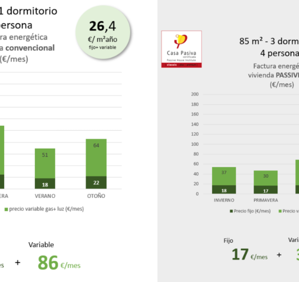 3. Eliminación de Dependencia del Gas: Al ser 100% eléctricas, nuestras viviendas eliminan la dependencia del gas, lo que se traduce en facturas más bajas y menor exposición a las fluctuaciones del mercado energético. Según los datos recopilados de nuestros clientes, el coste medio mensual de una vivienda Passivhaus asciende a aproximadamente 57€, incluyendo climatización, iluminación, electrodomésticos y otros consumos eléctricos. Este es un ahorro significativo que, además, contribuye a la reducción de la huella de carbono.